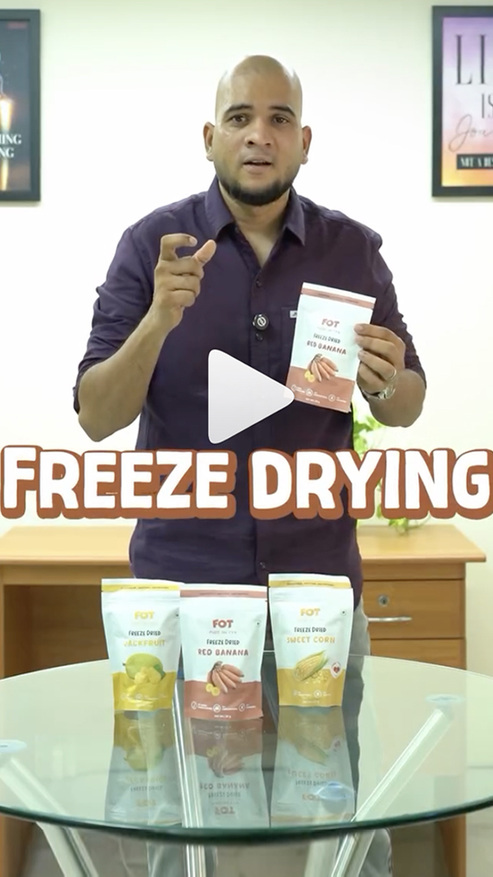Freeze-drying is a natural preservation process where moisture is removed while keeping the food’s original taste, texture, and nutrients intact. It allows us to deliver fresh-tasting food without preservatives.