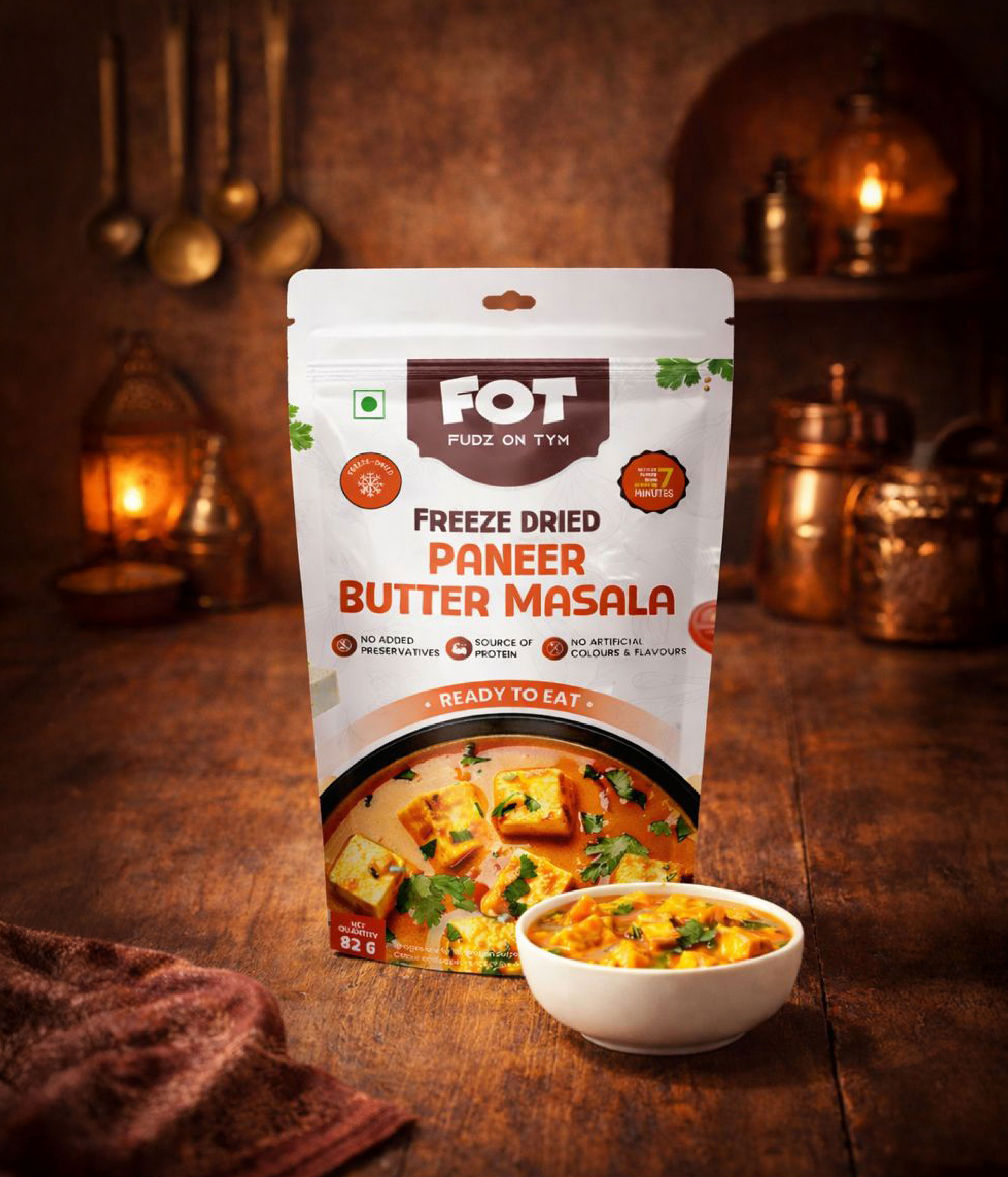 Preparing a FOT meal is simple and quick. Just add hot water as mentioned on the pack, stir well, cover, and wait a few minutes. Your meal will be ready to enjoy. You can also prepare it using a microwave oven for added convenience.