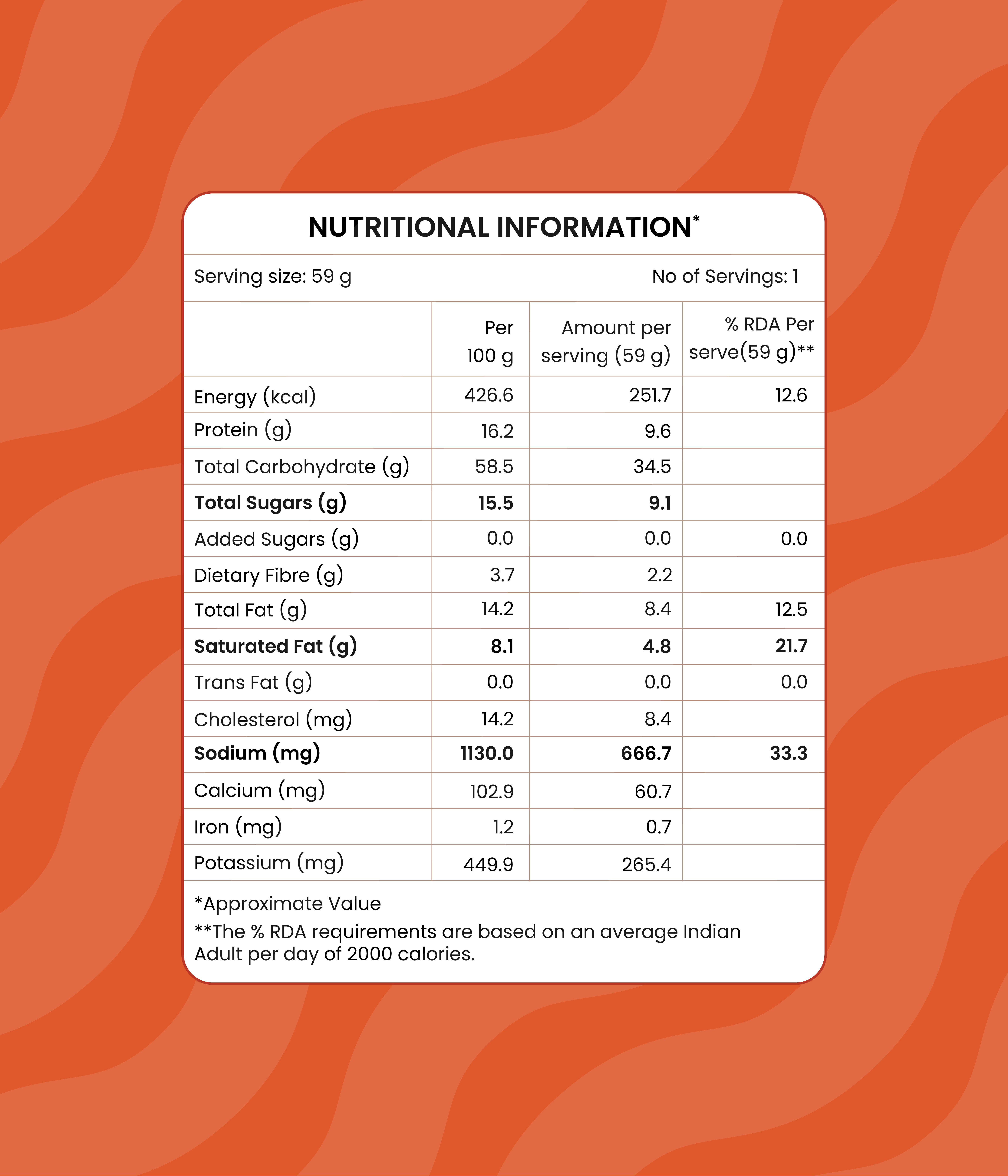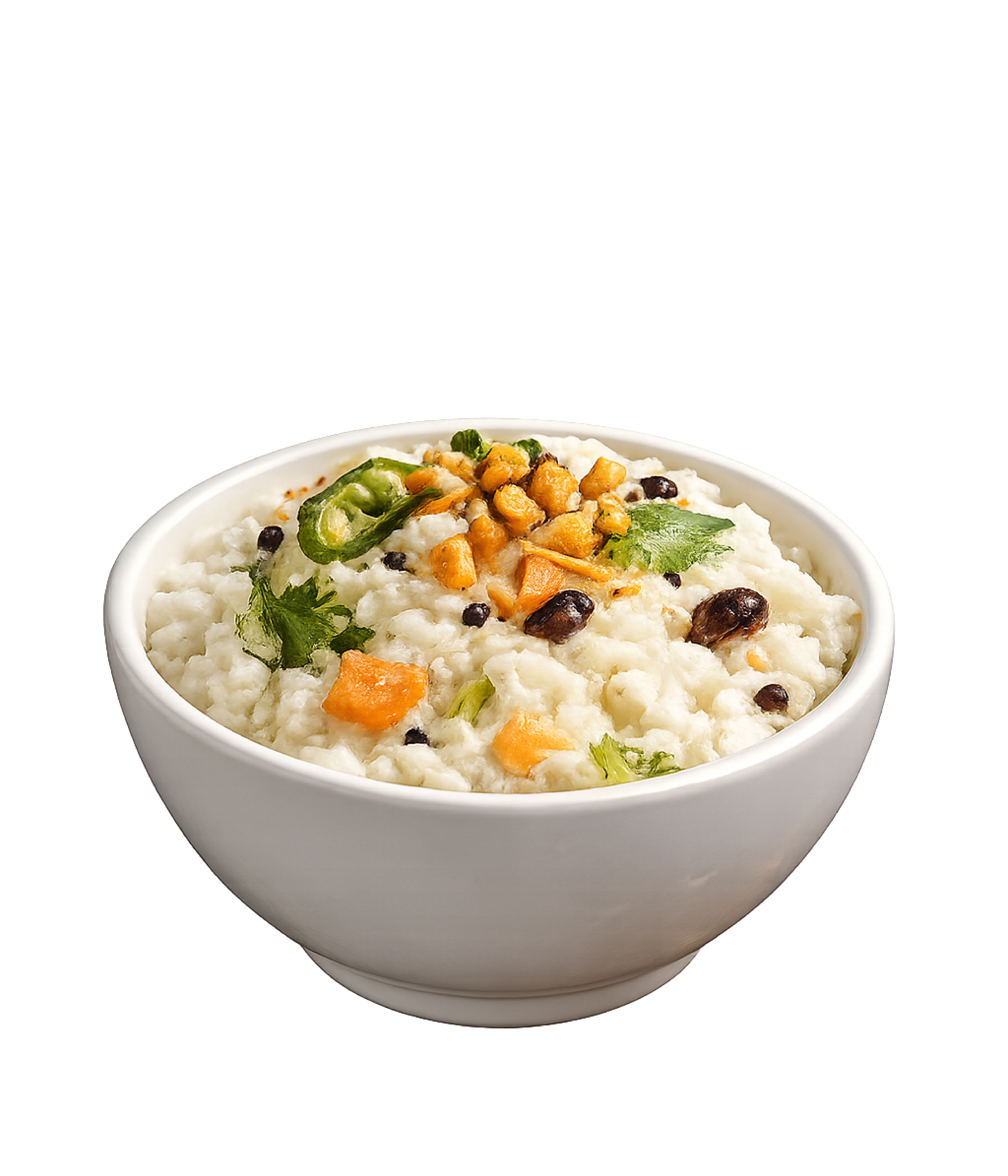 Curd Rice: Curd (57%), Rice (24%), Milk (9.5%), Cashew Nut, Dry Grapes, Salt, Fresh Cream, Edible Vegetable Oil (Coconut Oil), Green Chilli, Ginger, Curry Leaves, Split Urad Dal and Mustard Seed. |