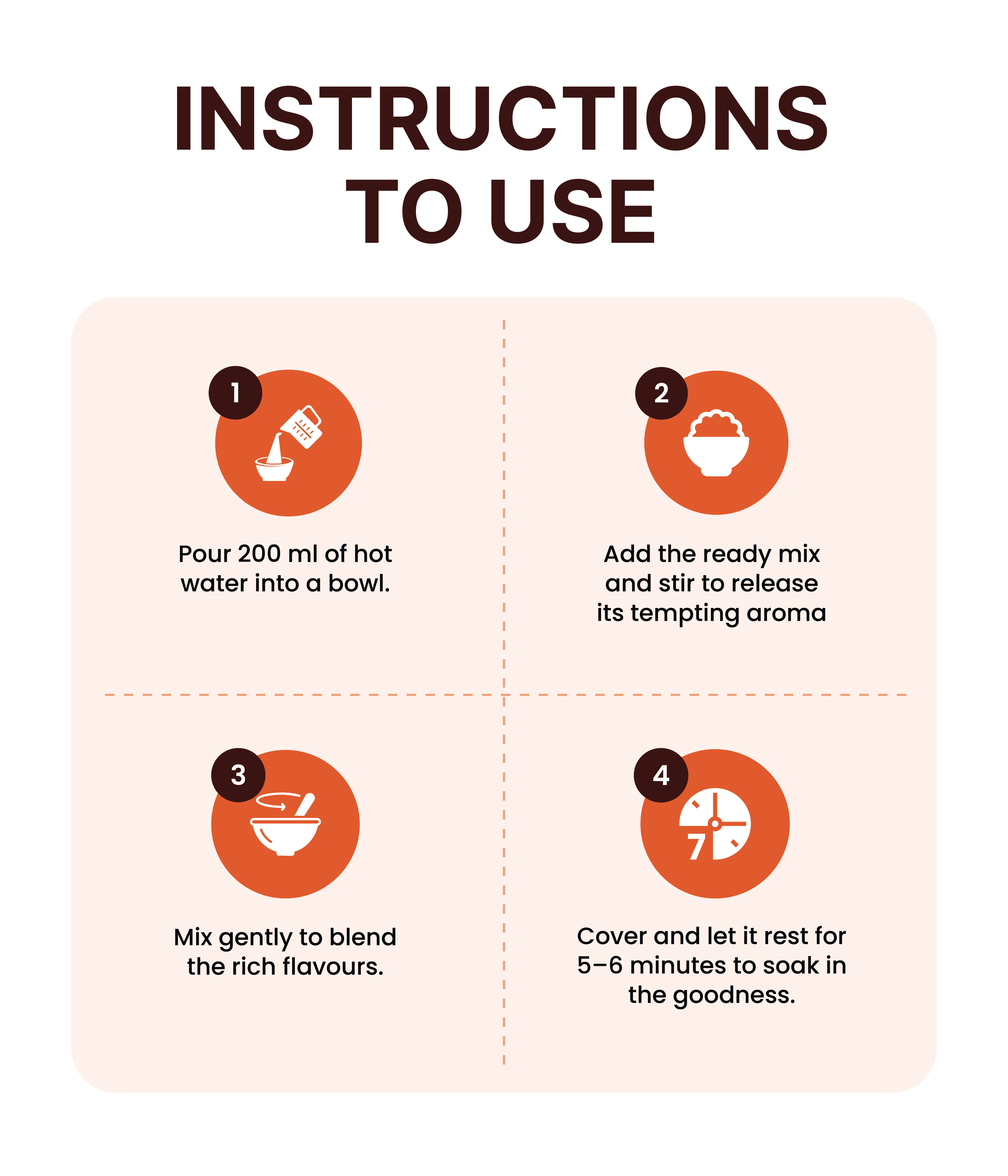 Preparing a FOT meal is simple and quick. Just add hot water as mentioned on the pack, stir well, cover, and wait a few minutes. Your meal will be ready to enjoy. You can also prepare it using a microwave oven for added convenience.